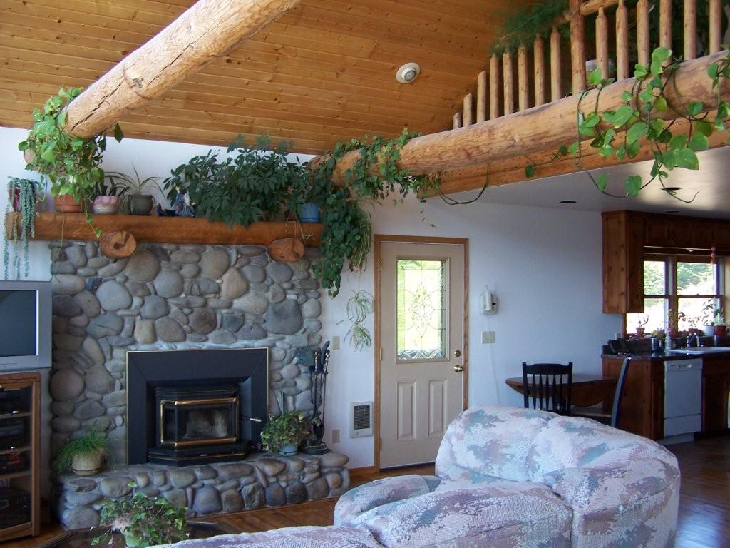 River rock fireplace